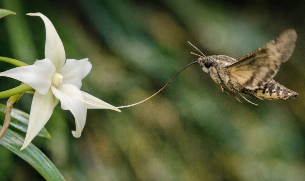 박각시나방은 꿀을 먹기 위해 꽃 깊숙이 부리를 집어넣어야 하고, 이 과정에서 자연스럽게 꽃가루가 나방의 머리나 몸에 묻게 됩니다. 나방이 다른 꽃으로 이동하면 그 꽃가루가 옮겨지면서 수분이 이루어지는 것입니다. 이러한 관계는 수백만 년에 걸쳐 형성되었을 것으로 추정됩니다. 난초는 점점 더 깊은 곳에 꿀을 숨겼고, 나방은 점점 더 긴 부리를 진화시켰습니다. 이는 마치 군비 경쟁처럼 보이지만, 실제로는 서로에게 이익이 되는 방향으로 함께 변화해 온 것입니다.